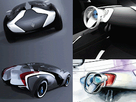 It was created by Czech student Ondrej Jirec for his Alias class at the Art Center College of Design. Among the distinctive features of the Maserati Tramontane's design are the components and body panels which flow from the interior to the exterior. These parts have different function, color, material and characteristics and create layers that add different "dimensions" and define an original design language.